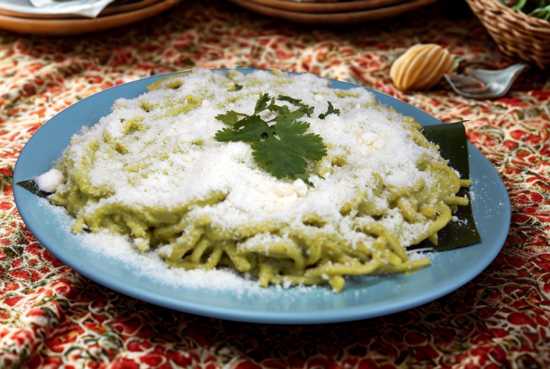 Tortilla de harina, huitlacoche, champiñones, crema agria, queso fresco.